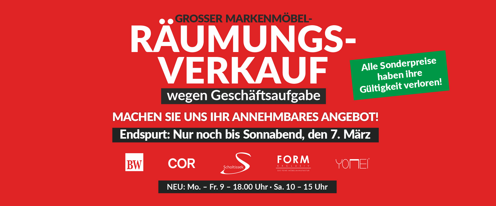 Wir schließen unser Einrichtungshaus! Seit über 50 Jahren sind wir in Minden und der Region Inbegriff für klassisches Wohnen und elegantes Einrichten. Jetzt ist für uns die Zeit gekommen, Abschied zu nehmen und einen neuen Lebensabschnitt zu beginnen. Deshalb schließen wir jetzt unser Einrichtungshaus in der Marienstr. 65 in Minden, dass wir mit viel Liebe […]